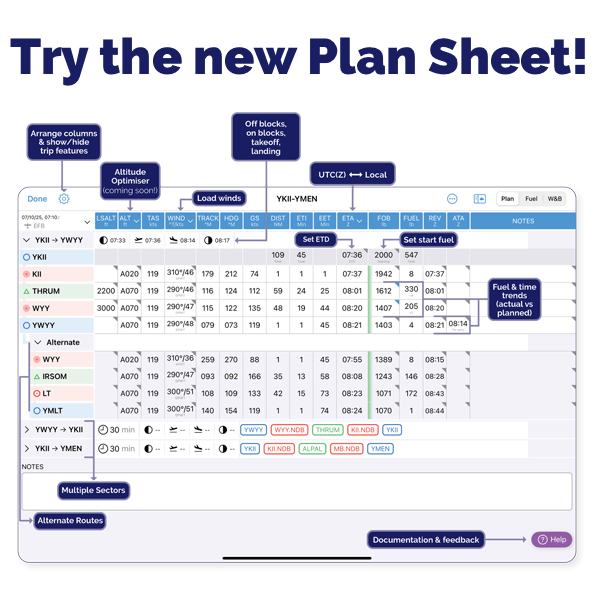 NOTAMs, Significant Weather, and all aerodrome weather on route, is now available for each flight plan sector. Activate by creating a multi-sector flight plan, then tap the magenta line in SmartBrief to view the sector briefing.